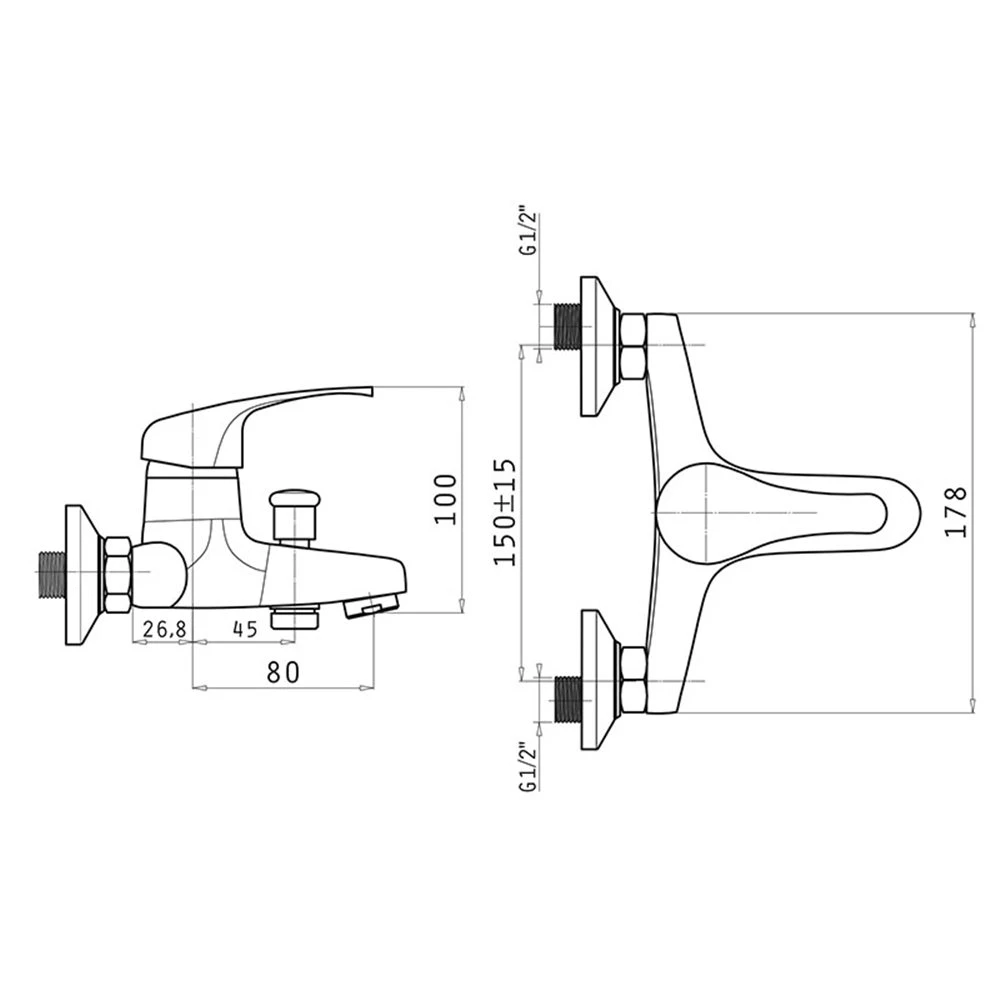 Επίτοιχη μπαταρία λουτρού με σετ ντούς PYRAMIS ECOLINE SONIA 090926001