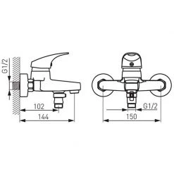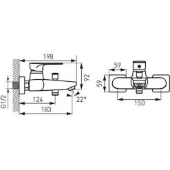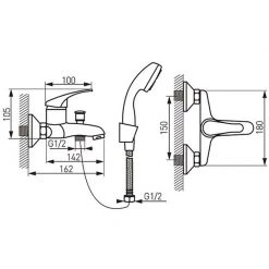 - Αναμεικτική επίτοιχη μπαταρία λουτρού με σέτ ντούς (τηλέφωνο , σπιράλ και στήριγμα ντούς)