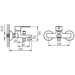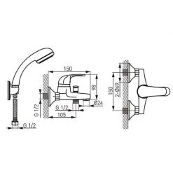 - Αναμεικτική επίτοιχη μπαταρία λουτρού με σέτ ντούς (τηλέφωνο , σπιράλ και στήριγμα ντούς)
