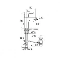 Μπαταρία νιπτήρος με σπιράλ, τηλέφωνο, στήριγμα, διακοπτάκι και βαλβίδα κλικ GLORIA DIVA 13-5016