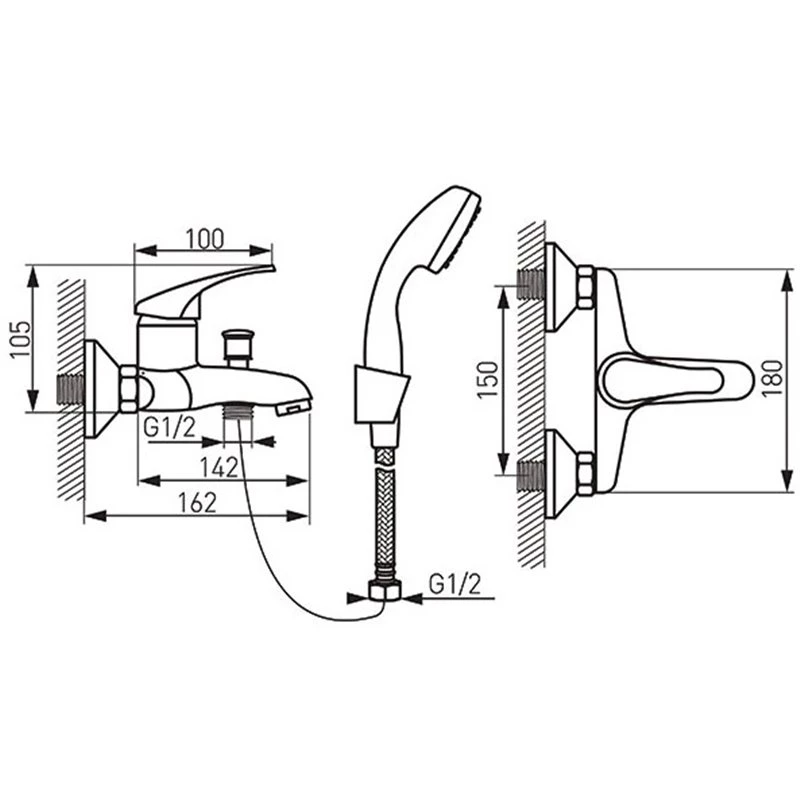 - G½ απόσταση έκκεντρης σύνδεσης 150 ± 20mm