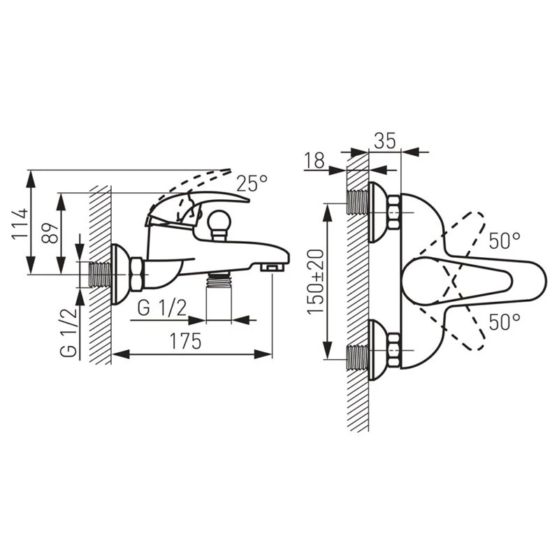 - G1/2 έκκεντρη σύνδεση απόσταση 150 ± 20 mm