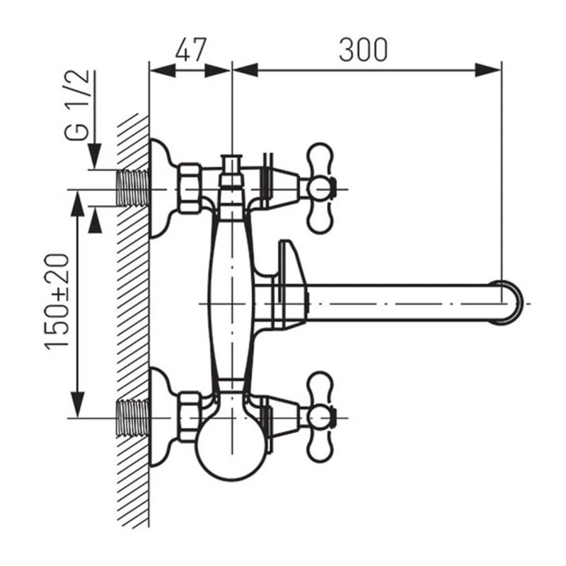 - G1/2 έκκεντρη σύνδεση απόσταση 150 ± 20 mm