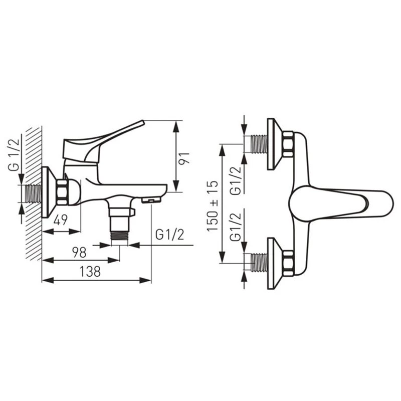 - G1/2 έκκεντρη σύνδεση απόσταση 150 ± 20 mm