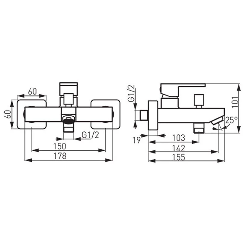 - G1/2 έκκεντρη σύνδεση απόσταση 150 ± 20 mm