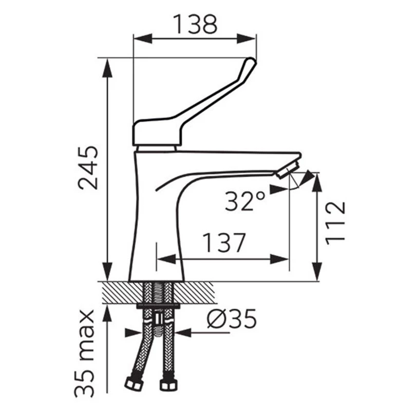 Μπαταρία νιπτήρα με περιστρεφόμενο στόμιο για ΑΜΕΑ FERRO TIGA MEDICO VERDELINE BTGM2AVL