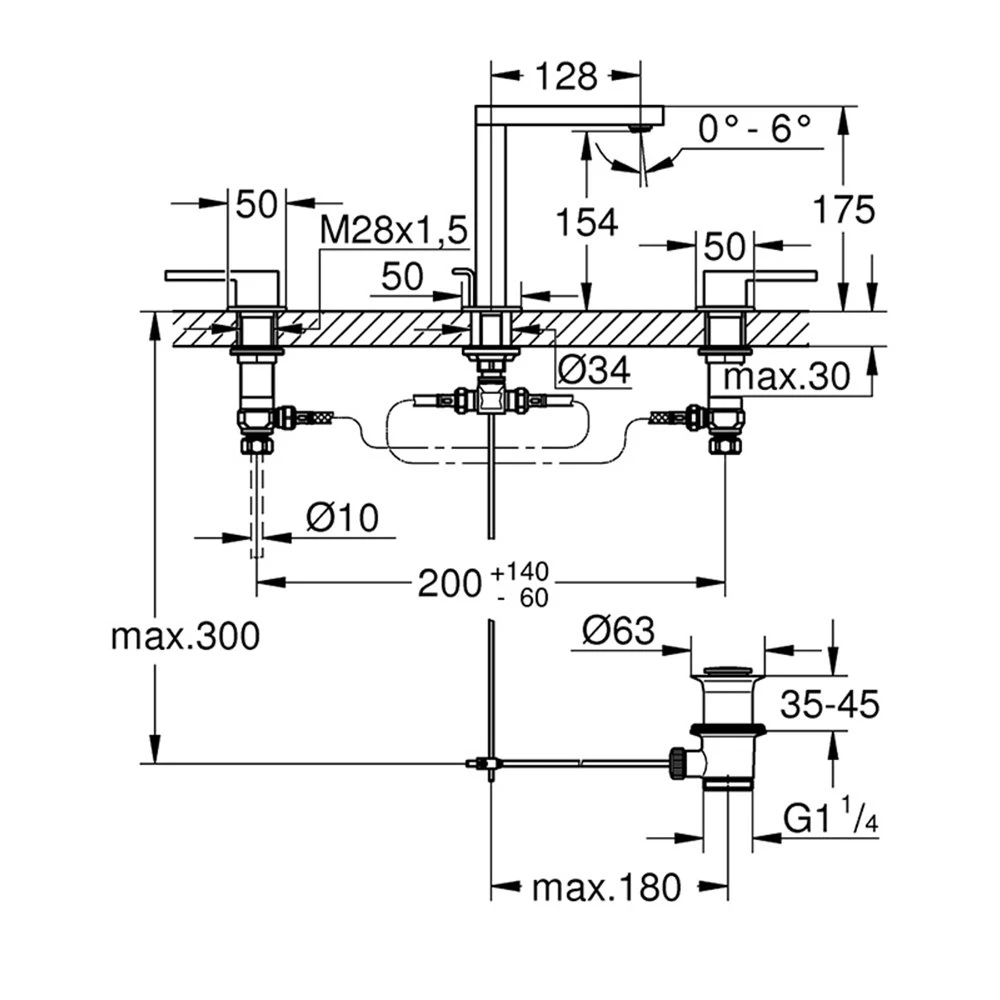 Μπαταρία νιπτήρος 3 οπών M GROHE PLUS 20301003