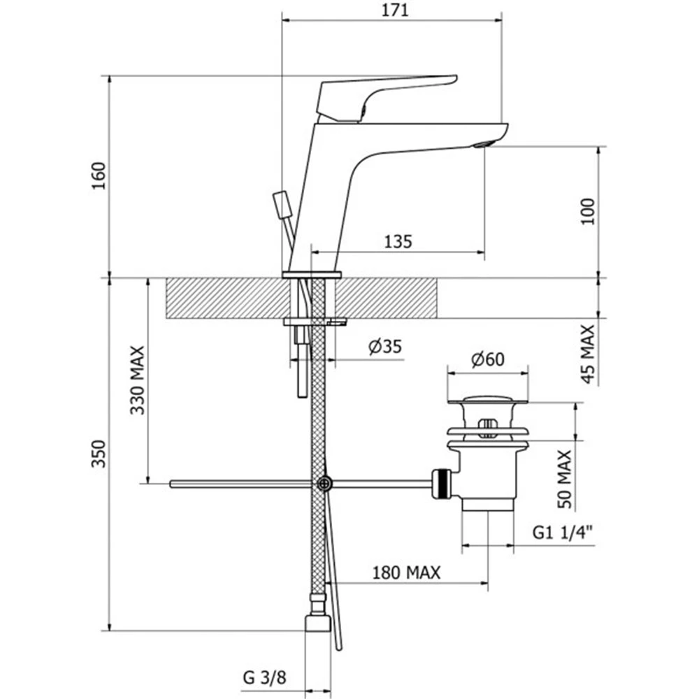 Μπαταρία νιπτήρος OTTONE MELODA SWING SW710 Χρωμέ
